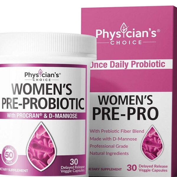 Prebiotics & Probiotics for Women – Clinically Proven ProCran – Organic Prebiotics, 50 Billion CFU, D-Mannose & Cranberry for Digestive, Immune, Feminine Health, Soy & Dairy Free, 30 Vegan Capsules