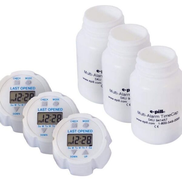 - COMPLETE MEDICATION MANAGEMENT SYSTEM - Great medication reminder for Three Different medications. Use all three e-pill TimeCap MULTI ALARMs if you need to keep track of mutiple medications with different medication times. Great pill organizer system for once a day or twice a day pills.