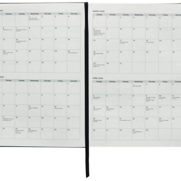 - Planner 2020 – DATED: January 2020 through December 2020. The weekly time management layout allows you to plan seven days, from Monday to Sunday, all in one 2-day page spread; (to-do-list, diary section for appointments, delegation & teamwork section, goals and projects section). Each day offers hourly scheduling from 7:00 AM to 8:00 PM. You also have; month at-a-glance pages for the year and academic (mid-year) almanac and next year calendar + 24 pages for note-taking