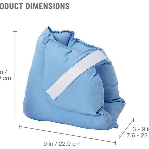 - SIZE: One size fits all. Actual heel pillow boot measures 9 inches x 9 inches. Soft polyester and fiberfill extend up over the ankle for added support