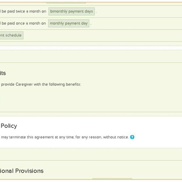 Use this form to spell out your agreement with someone whoās caring for an older person. You’ll detail the person’s responsibilities, hours, compensation, benefits and payment schedule.