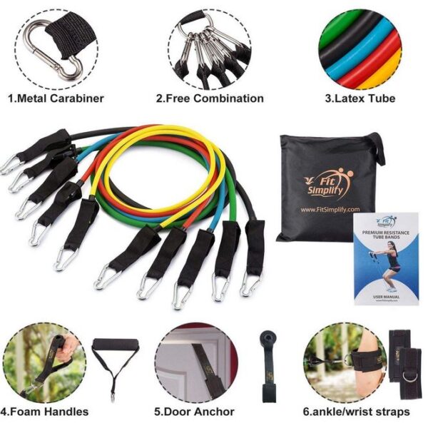 Fit Simplify Resistance Band Set 12 Pieces with Exercise Tube Bands, Door Anchor, Ankle Straps, Carry Bag and Instruction Booklet – Bonus Ebook and Online Workout Videos