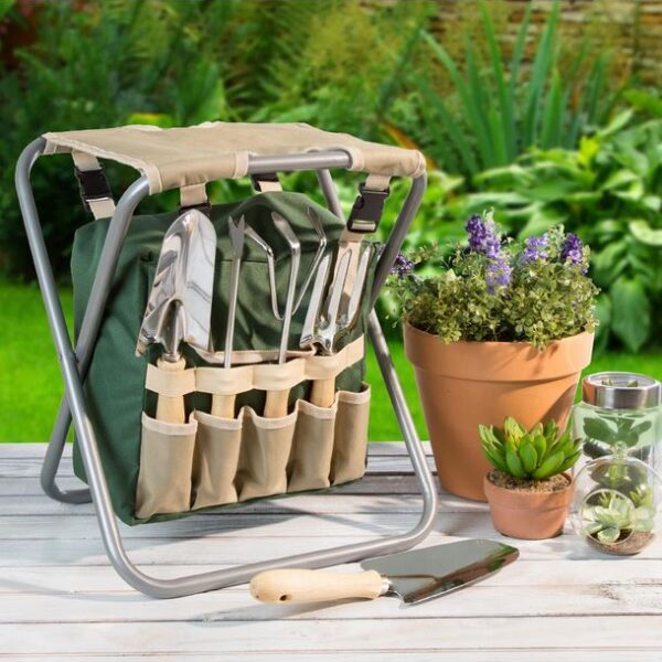 Pure Garden Folding Garden Stool with Tool Bag Plus 5 Garden Tools