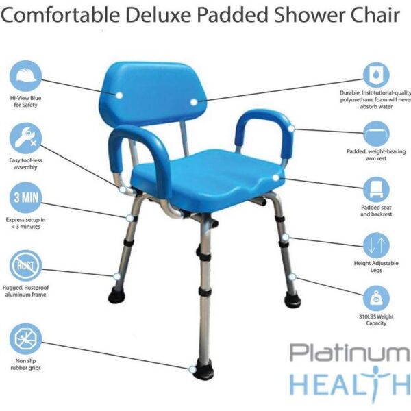 Shower Chair, Bath Chair, Padded with Armrests, Comfortable(tm) Deluxe Shower Chair. Institutional Quality.